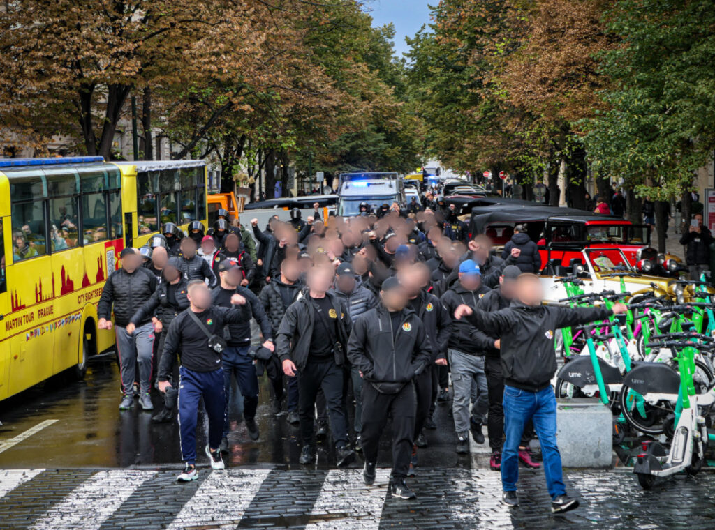Náš sraz je na Staroměstském náměstí a poprvé volíme dress code nejen na vrchní polovinu těla, ale také na spodní, a snažíme se, slávisty, obléct kompletně do černé – tedy jak vršek, tak spodek. Nepříjemné počasí a neustálý déšť paradoxně v tomto možná trochu pomohl, kdy přítomní oblečení do kapuc předčili naše očekávání a při pohledu například na Letenských schodech zpět je dress code opravdu perfektní. Děkujeme všem, že se zapojili, pokračujeme v tom dál – na první pokus to vůbec nebylo špatné.