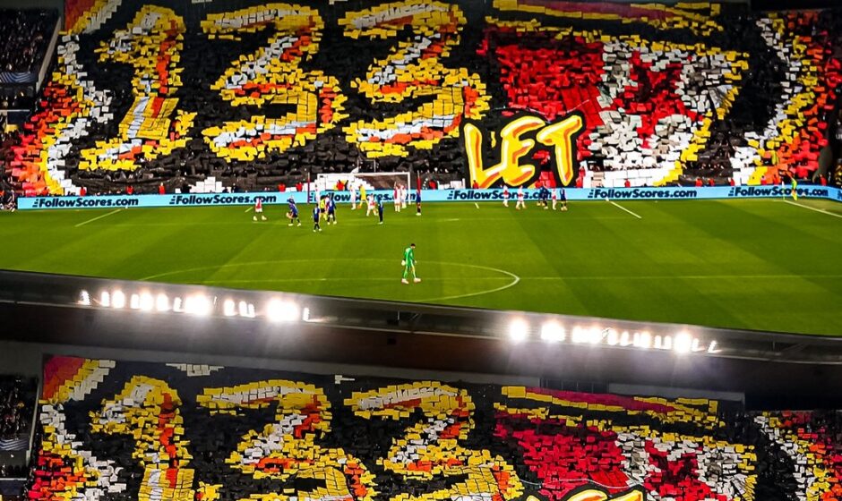 Poprvé bylo použito protažení připravené kartoniády na zeď nad severní tribunou s využitím